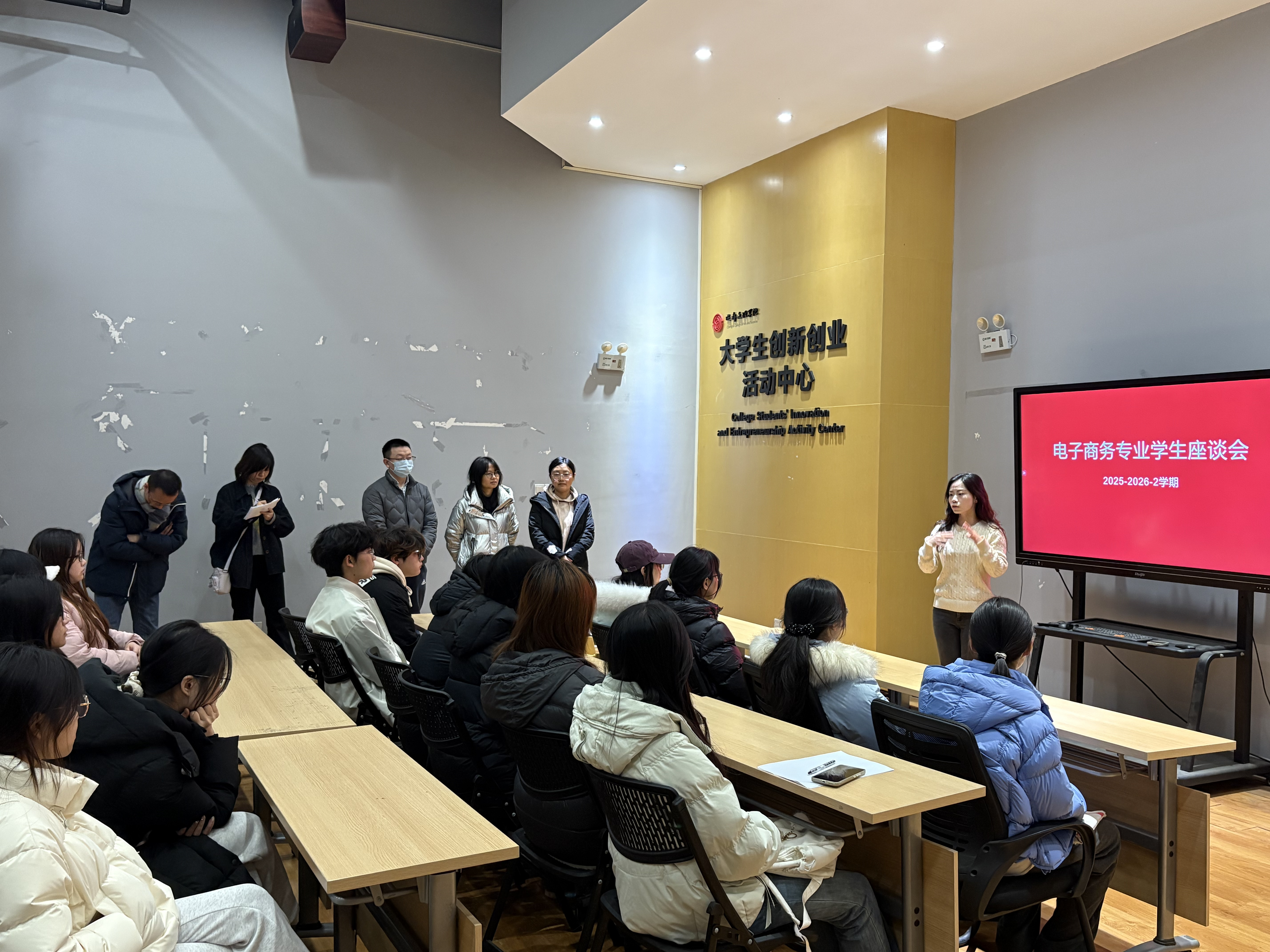 电子商务教研室在“文理锦创”直播电商人才培养基地组织召开专题座谈会,2024、2025级电子商务专业学生齐聚一堂,围绕新媒体实践课程的优化方向、直播实训的深化需求。