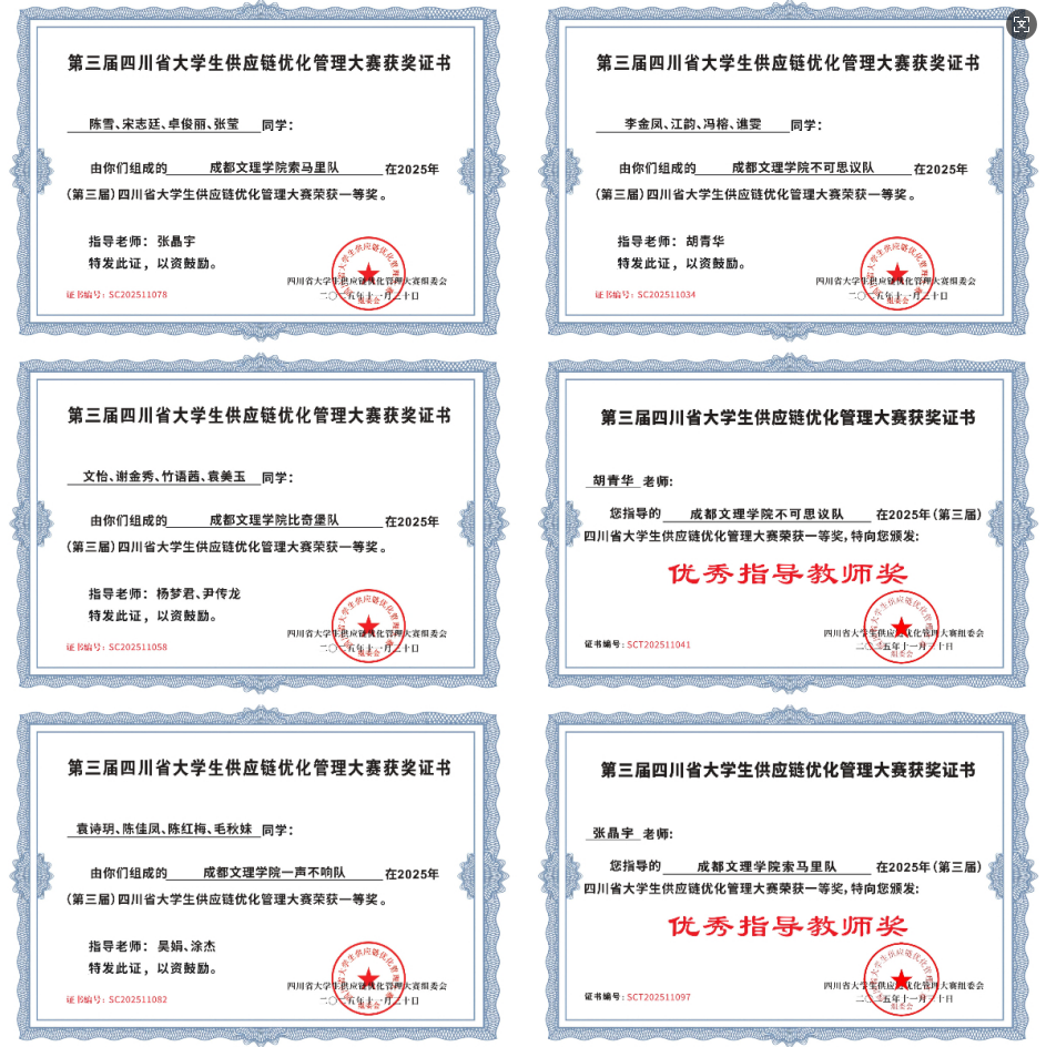 四川省第三届大学生供应链优化管理大赛圆满结束,成都信息工程大学承办,从23支队伍中选拔了15支队伍参加省级初赛,提升参赛同学的竞赛能力。