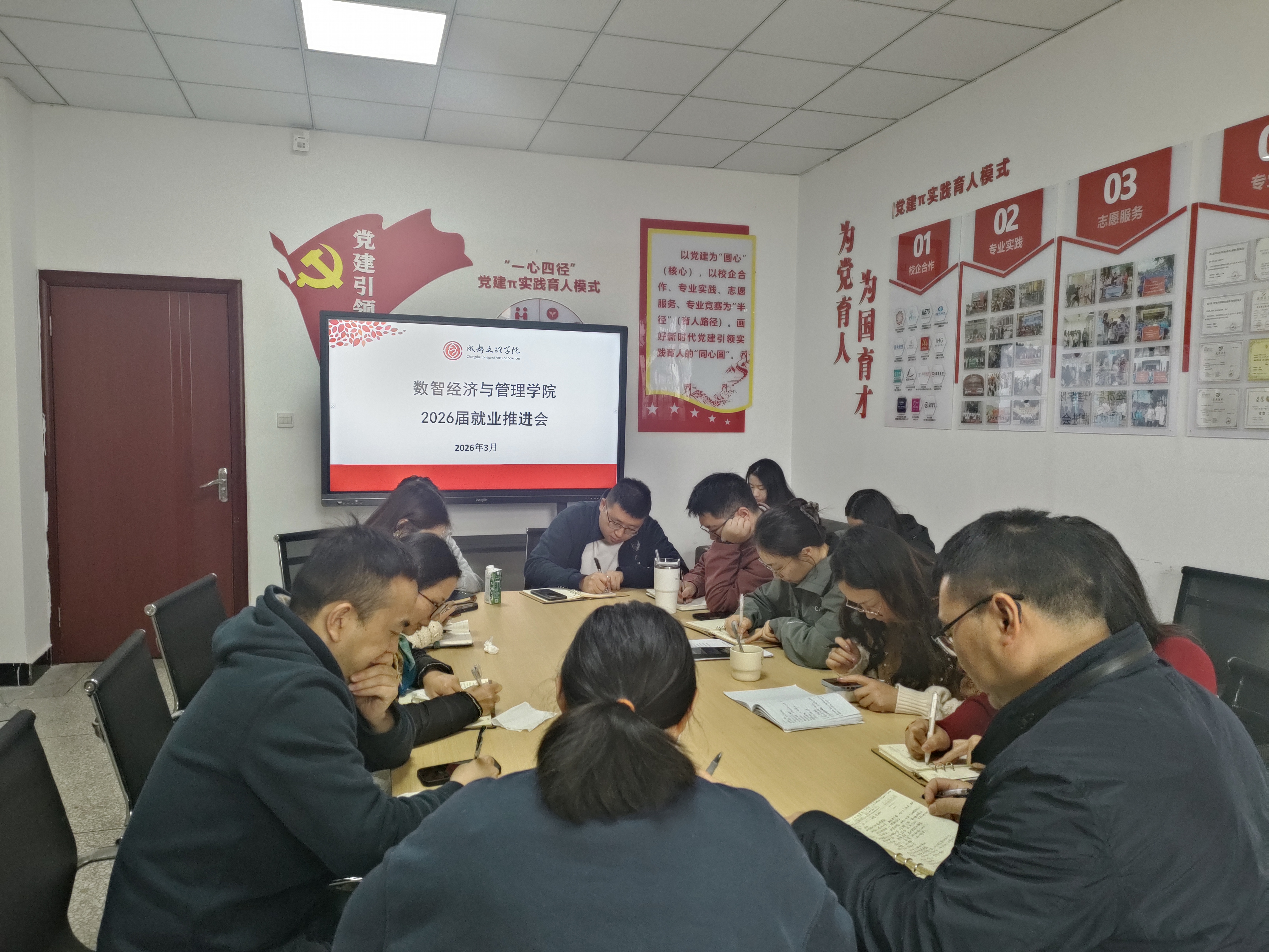 为扎实推进2026届毕业生高质量充分就业,数智经济与管理学院在行政楼A309召开2026届毕业生就业工作推进会,做实就业服务。