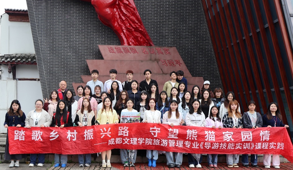为深入贯彻文旅融合发展国家战略,精准对接新时代旅游人才培养要求,2026年4月11日至12日,数智经济与管理学院统筹推进专业教学与思政教育,组织 2024、2025 级旅游管理专业学生赴都江堰大熊猫中华苑、郫都区战旗村,开展“踏歌乡村振兴路,守望熊猫家园情”主题实践教学活动,并同步举行“青春心向党,奋进强国路”主题党日活动。学院以“知行合一”为路径,着力培养兼具专业素养、职业技能与家国情怀的高素质应用型文旅人才。