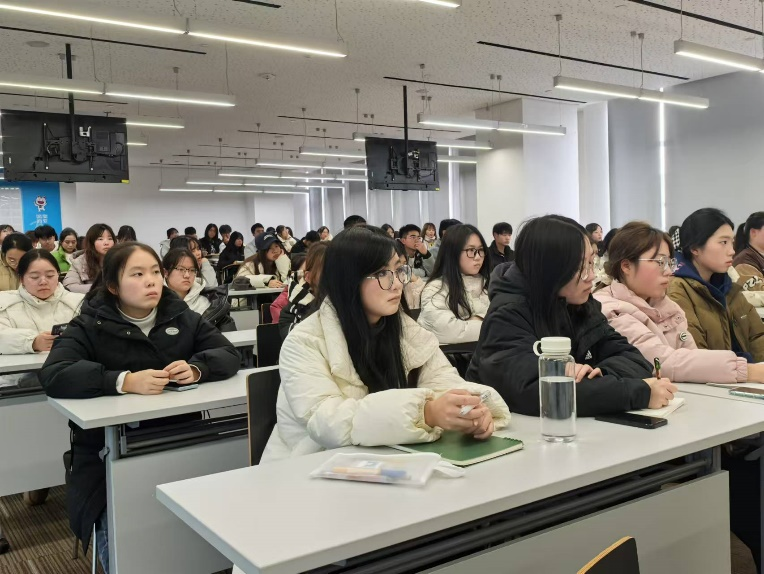 随后, 招商银行信用卡中心HR龚鹏程老师为同学们带来了一场精彩的讲座,详细介绍了信用卡的发展历程以及招商银行信用卡中心的业务情况,以及当前以及未来银行对人才的需求情况,勉励同学们努力学好自己的专业,培养各方面的能力,特别是要有坚韧的品格。讲座内容丰富,案例生动,同学们听得津津有味。讲座结束后,还进行了互动环节,同学们积极提问,人事经理耐心解答,现场气氛热烈。