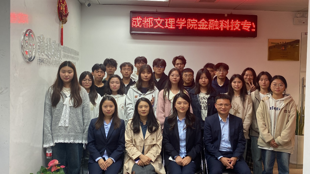 10月30日,在学院领导的关心和支持下,经济与金融教研室教师刘雨露带队2024金融科技专业全体学生,前往海通期货成都营业部参观学习,该公司给予了热情接待,营业部刘瑶总经理带领同学们参观了公司办公区,对公司岗位情况做了详细介绍,并安排了公司相关岗位老师做了讲座分享。