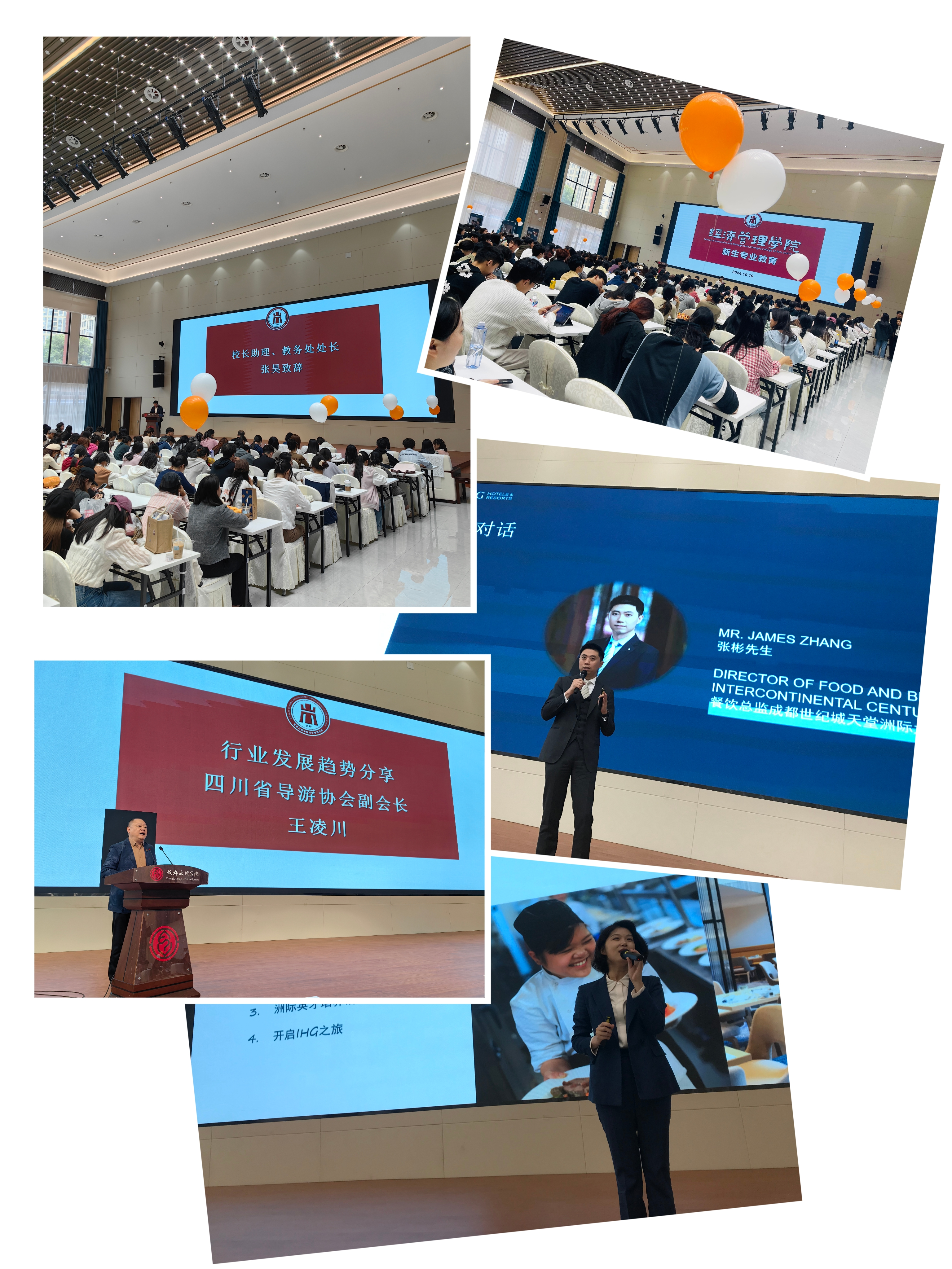 校企合作介绍环节则让新生们更加了解了学院与行业紧密合作的成果。成都世纪城洲际大饭店的代表们详细介绍了校企合作项目、实习实训基地建设以及学生实习就业情况。他们通过分享具体的合作案例和成功经验,让新生们对学院与企业的合作模式有了更深入的了解,也增强了他们对未来就业的信心。此外,活动中还特别介绍了洲际酒店集团与学院合作开展的“洲际英才项目”。该项目旨在培养具有国际视野和专业技能的旅游管理人才,为新生们提供了一个展示自我、提升能力的平台。通过详细介绍项目背景、培养目标、选拔流程以及职业发展路径等内容,鼓励新生们积极参与并努力成为洲际英才项目的一员。