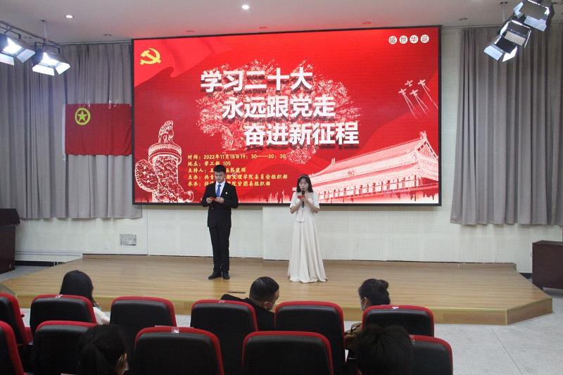 活动伊始,全体师生奏唱国歌。随后,优秀团员代表分享党政学习心得,激起了在场观众心中强烈的荣誉感和使命感。活动过程中,经济管理学院学子以情景剧、合唱、书法等多种形式,精美诠释了中国共产党的百年历程,表达了“青年永远跟党走,奋进新征程”的笃定的决心。