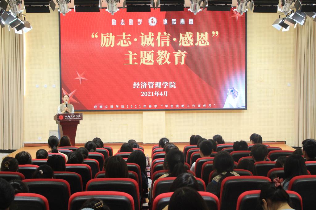 为进一步加强学生的诚信教育,增进学生诚信感恩意识,4月21日14:00,经济管理学院在学工部105会议室举办“励志·诚信·感恩”主题教育大会。本次大会由学院资助工作联络人彭景主持,经济管理学院党总支书记李江、学工办主任刘婷、全体辅导员出席会议,全院受资助学生到场参加。