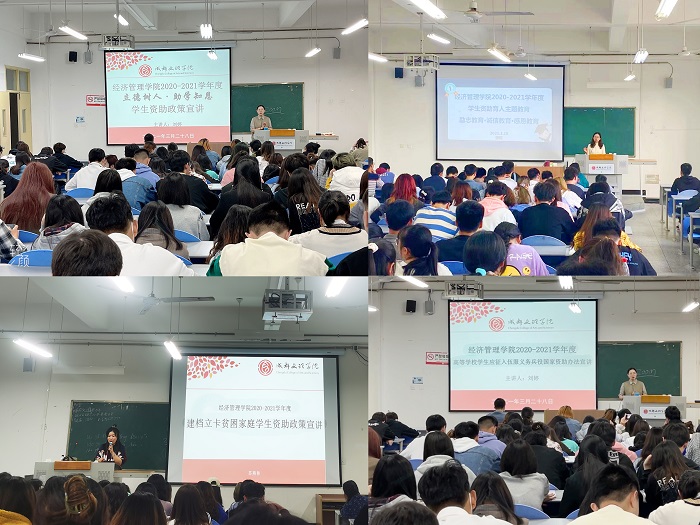 为积极响应学校2021年春季“学生资助工作宣传月”活动,营造全社会关心支持学生资助工作的良好氛围,加强对学生的励志感恩教育,3月28日,经济管理学院全面开展2021年春季学期学生资助政策宣讲活动,线下宣讲共15场次,覆盖了36个班级共计1668名学生;线上宣讲共6场次,覆盖了19个班级共计558名学生。
