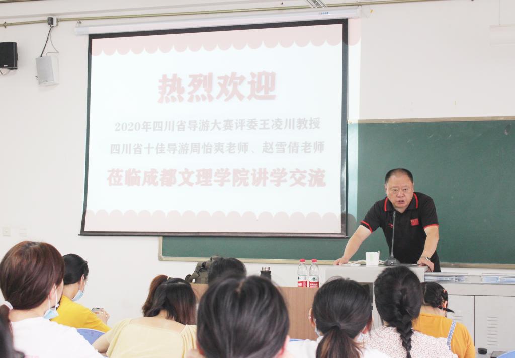 6月15日16时,经济管理学院率先邀请刚出炉的2020年四川省十佳导游到校讲学。由四川省文化和旅游厅、人社厅、团省委、省妇联联合主办,自贡市文广旅局承办,四川省旅行社协会协办的 2020全省导游大赛于6月11日在自贡落幕,2020年四川十佳导游正式出炉。本次,我院副院长程庆代表学院邀请到了2020年四川省导游大赛评委王凌川教授、四川省十佳导游一等奖周怡爽老师、二等奖赵雪倩老师走进我校课堂。