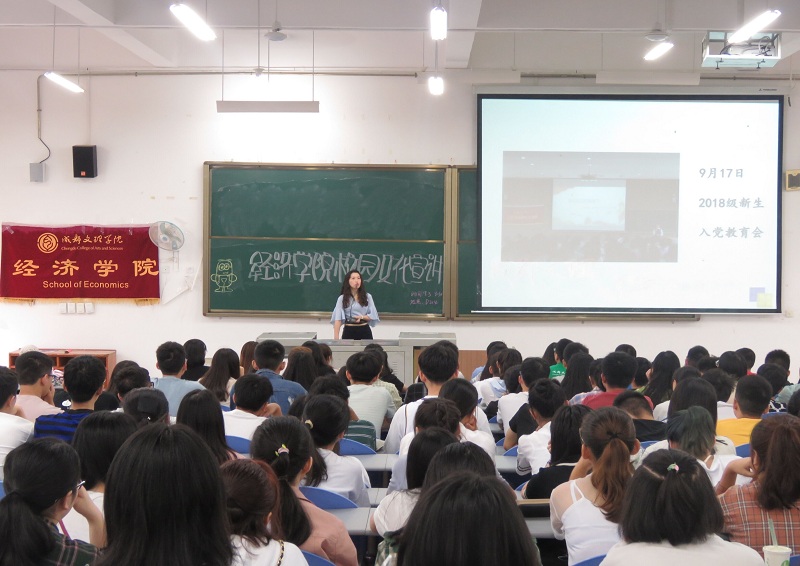 9月3日8:30,经济学院于主教学楼D214成功开展校园文化宣讲。经济学院分团委书记丁兰,分团委学生会主要学生干部以及全体2019级新生参加此次会议。