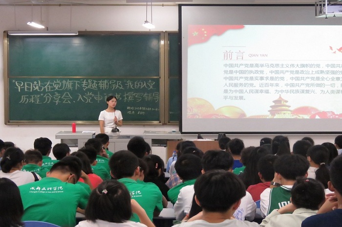 接着,党员代表彭雪上台给大家作“我的入党历程”分享,讲述了她在向党组织靠近的过程中各方面取得的进步和改变,最后党员代表罗曼琳为大家讲解入党申请书的书写格式并且分享自己的入党历程、心得。