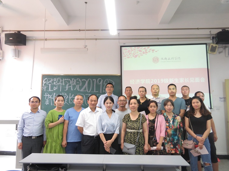 9月1日,我院于主教学楼C105教室成功开展2019级新生家长见面会。莅临本次会议的嘉宾有:经济学院院长蒋和胜、党总支书记、学工办主任李江,教研室主任刘胜林,教学行政秘书余瑶、曹影,第一学生党支部书记赵钰,分团委书记丁兰,以及19级新生家长。