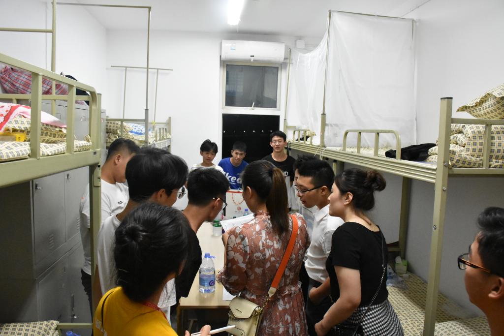 为深入了解我院新生入住情况,增进辅导员与新生的距离,8月31日19:30,我院党总支书记袁久斌带领2019级本科辅导员阮如玉、专科辅导员刘楠走访了各班学生寝室,各班班导生随行并与新生进行亲切的交流。