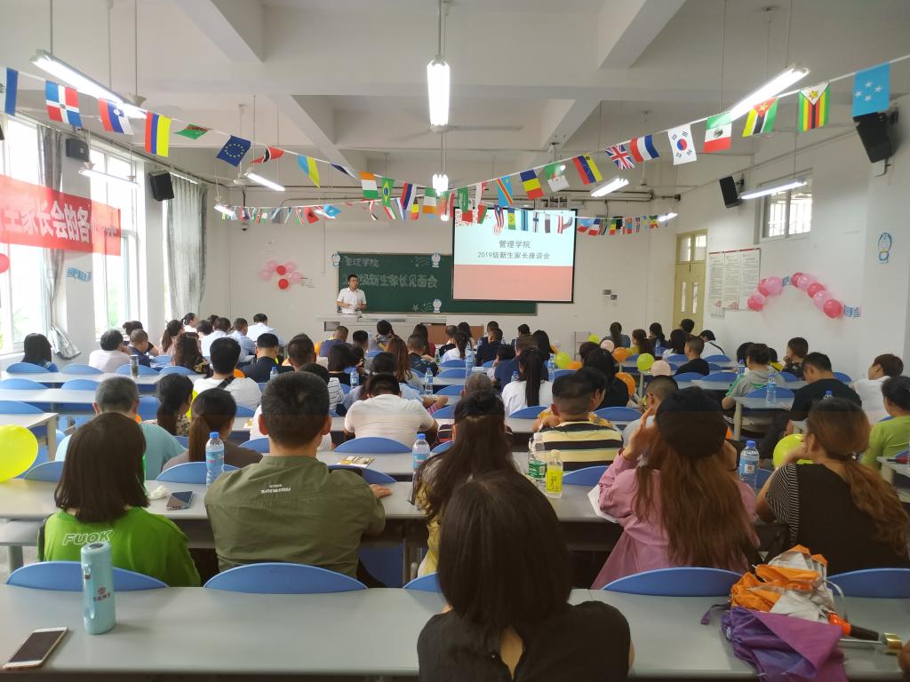 为加深新生家长对学校、专业及就业前景的了解,建立家校沟通的顺畅渠道,8月31日14:30,管理学院于主教学楼B301成功举办2019级新生家长见面会。管理学院党总支书记袁久斌,副院长程庆,教师党支部书记刘妍,旅游管理教研室主任刘飞、副主任徐飞,工商管理教研室主任李映辉、副主任石玉峰,2019级辅导员阮如玉、刘楠出席会议。2019级部分新生家长到场参加。本次见面会由学工办主任周俊霞主持。