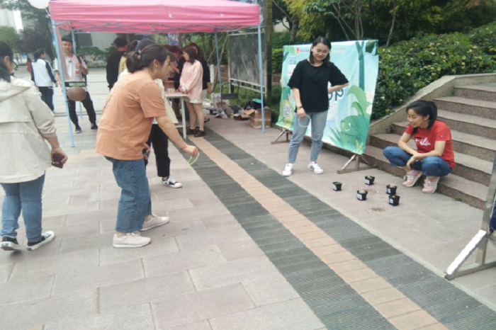 本次活动的目的是传递环保理念,鼓励大学生亲身参与绿色植物种植活动,唤醒大学生的绿色环保意识,从而让校园坏境变得更加怡人。本次绿色植物领养活动将佛甲草、薄荷叶、多肉三种便于种植培育的草苗作为领养植物,参与活动的同学通过扫描微博二维码、就能获得一次套圈的机会,套到相应植物后便可将植物带走领养。作为此次活动的协办方,管理学院青分队主要负责活动前期的准备工作以及活动时现场秩序的维持。活动过程中,来来往往的同学们都停下脚步,纷纷加入到活动中来,领走了一株株与自己有缘的小绿植。午时炎热的天气将活动的氛围带向高潮。下午五点左右,活动圆满结束,种子和绿植都分发完毕,全体工作人员合影拍照留恋。