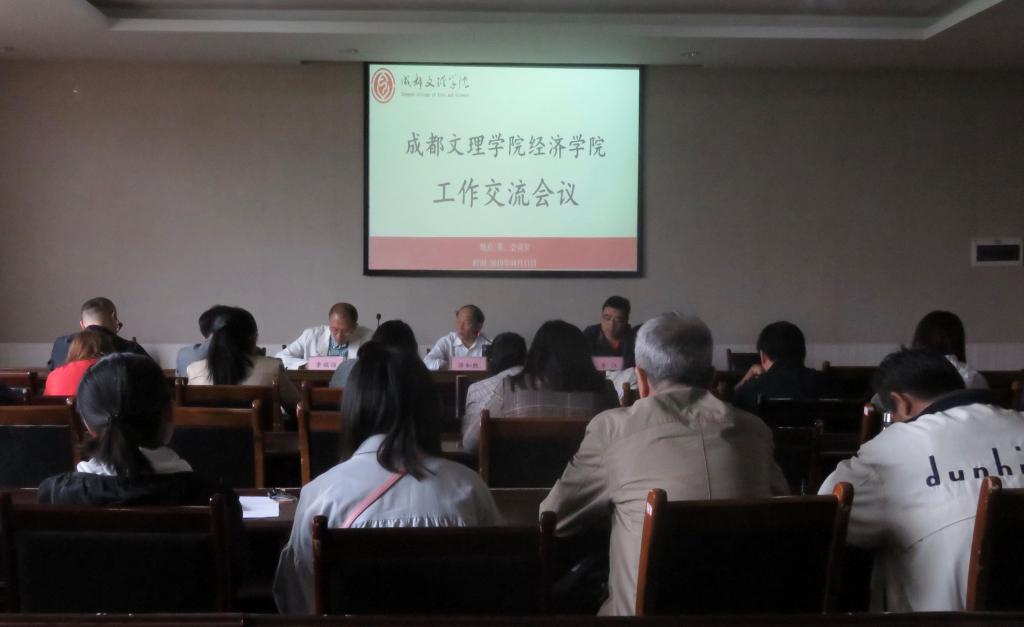 经济学院于2019年4月11日13:30在行政楼第三会议室召开全体教职员工大会 。出席本次会议的有经济学院院长蒋和胜、党总支书记李江、副院长李瑞强、教学秘书及全体专职教师、辅导员。在会前,蒋和胜院长、李江书记、李瑞强副院长在原数学与统计学院办公室与该院全体教师进行了院系整合事宜的通报与座谈。