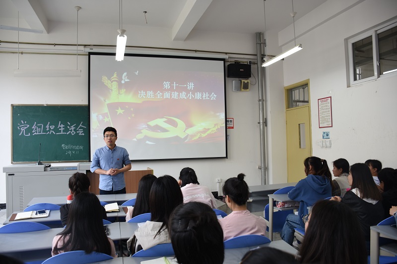 4月11日下午13时,管理学院学生党支部于主教学楼C栋212教室组织开展以“习近平新时代中国特色社会主义思想专题学习——决胜全面建成小康社会、开启全面建设社会主义现代化国家新征程”为主题的党组织生活会。管理学院党总支书记袁久斌、学生党支部书记苏燕林、分团委书记史利珍、自管委分会指导老师彭景及管理学院学生党支部全体成员参加此次生活会。