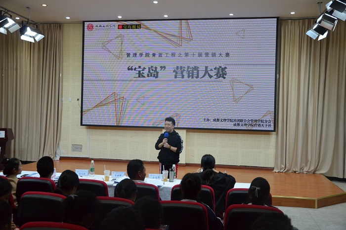 11月1日19:00,为给广大对营销感兴趣的学生一个施展才能的机会。管理学院于学工部105举行第十届“宝岛”营销大赛决赛。我院学工办主任袁久斌、学生党支部书记苏燕林、分团委书记史利珍以及自管委指导老师彭景出席。我院专业指导老师李映辉和石玉峰莅临现场担任评委。从初赛中晋级的“奇迹小分队”等十支队伍参加决赛,我院2018级部分学生到场观看学习。