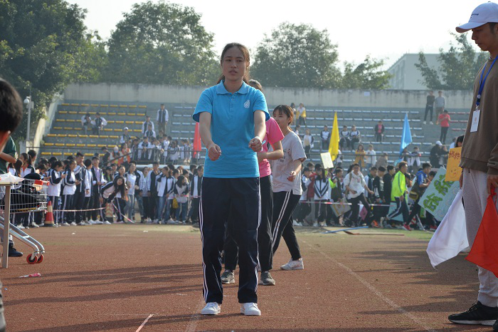 11月1日15:00,脚夹球比赛在主席台前赛道中开赛,我院参赛团队着蓝色院服参赛,在一场紧张激烈的比拼中拿下第三名的好成绩。