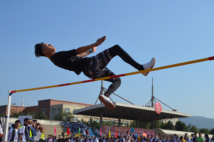 10月31日14:00,在男子跳高比赛中,我院2017级物业管理专业种子选手李旭尧在跳高赛场不负众望,以跳高1.76米的佳绩夺得冠军。