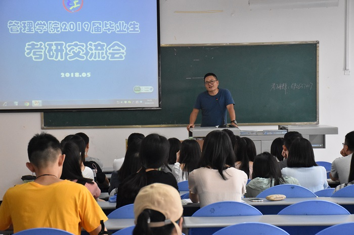 5月31日14:00,管理学院于主教学楼D栋302教室举行2019届毕业生考研交流会,管理学院副院长唐鸿、管理学院分团委书记史利珍出席,管理学院2014级人力资源专业考研成功的学生邓丹到场,近五十位备考学生参加。