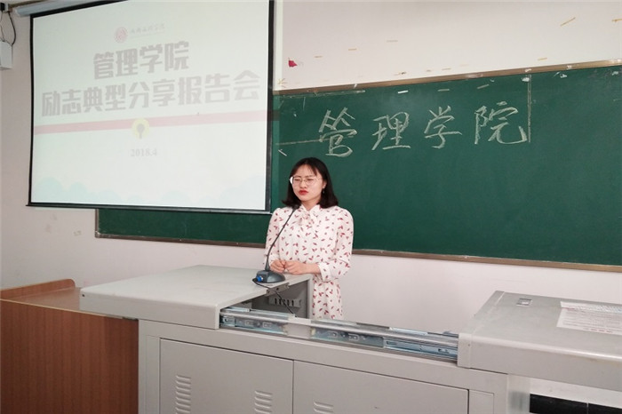 4月2日12时许,我院于D202成功举行了2018年管理学院励志典型分享报告会,管理学院学工办主任袁久斌、分团委书记史利珍、学生党支部书记苏燕林和自管委指导老师彭景莅临,各年纪受助学生参与。