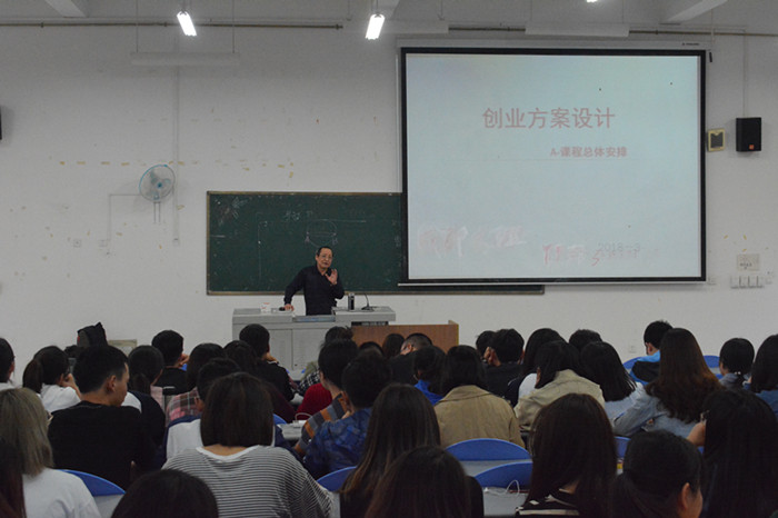 3月28日下午6时40分,管理学院院长陈高林于行政楼D214进行创业管理课程的创业方案设计讲座,2015级管理学院学生参与本次教学课程。