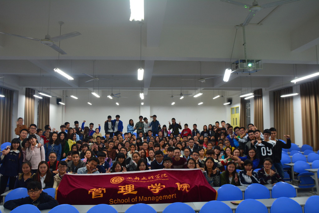 2015年11月5日16点30分,管理学院于主教C114成功举办了第四季“蓝精灵养成计划”开幕仪式。到场的嘉宾有管理学院分团委书记苏燕林,分团委副书记阳金秋,学生会主席王嘉盟及各部门部长,2015级全体干事参与。