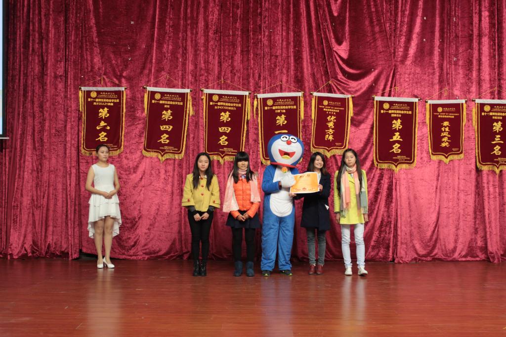 典礼伴随着一段精彩的视频展开,带领同学们回顾了管理健儿运动会中的动人风采,展示了蓝胖子的文理之行,拉开了荣誉篇的管理运动会。接下就是备受期待的颁奖环节,风驰电掣奖、矢志不渝奖、珠联璧合奖、最拉风飞毛腿奖等等一系列由幕后工作人员精心搭配的运动会奖项使得会场气氛迅速活跃起来。在轻松的氛围里大家不不忘对运动会期间在背后默默付出,不求回报,一心付出的管理学子致以谢意,是他们为管理运动会撑起了一片湛蓝天空。期间文娱部的小伙伴们还为大家献上了一首《海阔天空》,似乎在宣誓管理会永远高唱自己的歌!最后,分团委书记苏燕林发表感想,表示在此次运动会中管理学子展示出的青春的力量,团结的力量,情谊的力量,是值得用心铭记的!