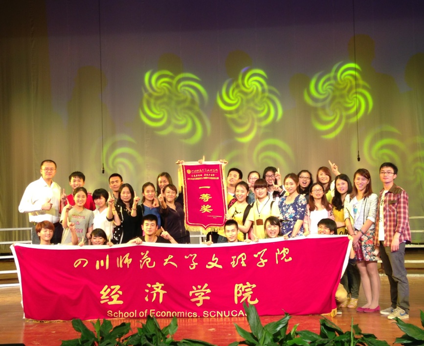 本次比赛经济学院作为第二个出场的院系,以《向着青春出发》瞬间点燃了现场的气氛,清澈的嗓音和动人的表演让大家深深的体会到当代大学生奋发的目标,肩上的历史责任以及激昂的爱国热情,感染了在场的每一位师生赢得了大家的一阵阵掌声,取得了全场最高分9.87分,获得了本次比赛的第一名。