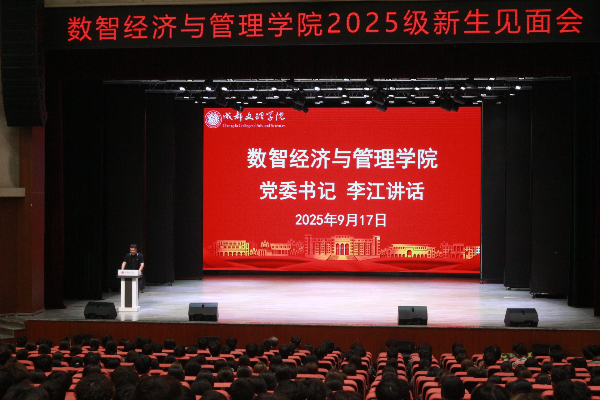 为帮助2025级新生尽快适应大学环境、科学规划学业生涯,9月17日下午14时10分,数智经济与管理学院于星空剧场召开2025级新生见面会。学院院长李瑞强、党委书记李江、副院长程庆,各系负责人刘飞、张晶宇、王昕悦、吴晓曦,教学秘书代表赵钰,2025级新生全体辅导员出席,全体2025级新生参会。