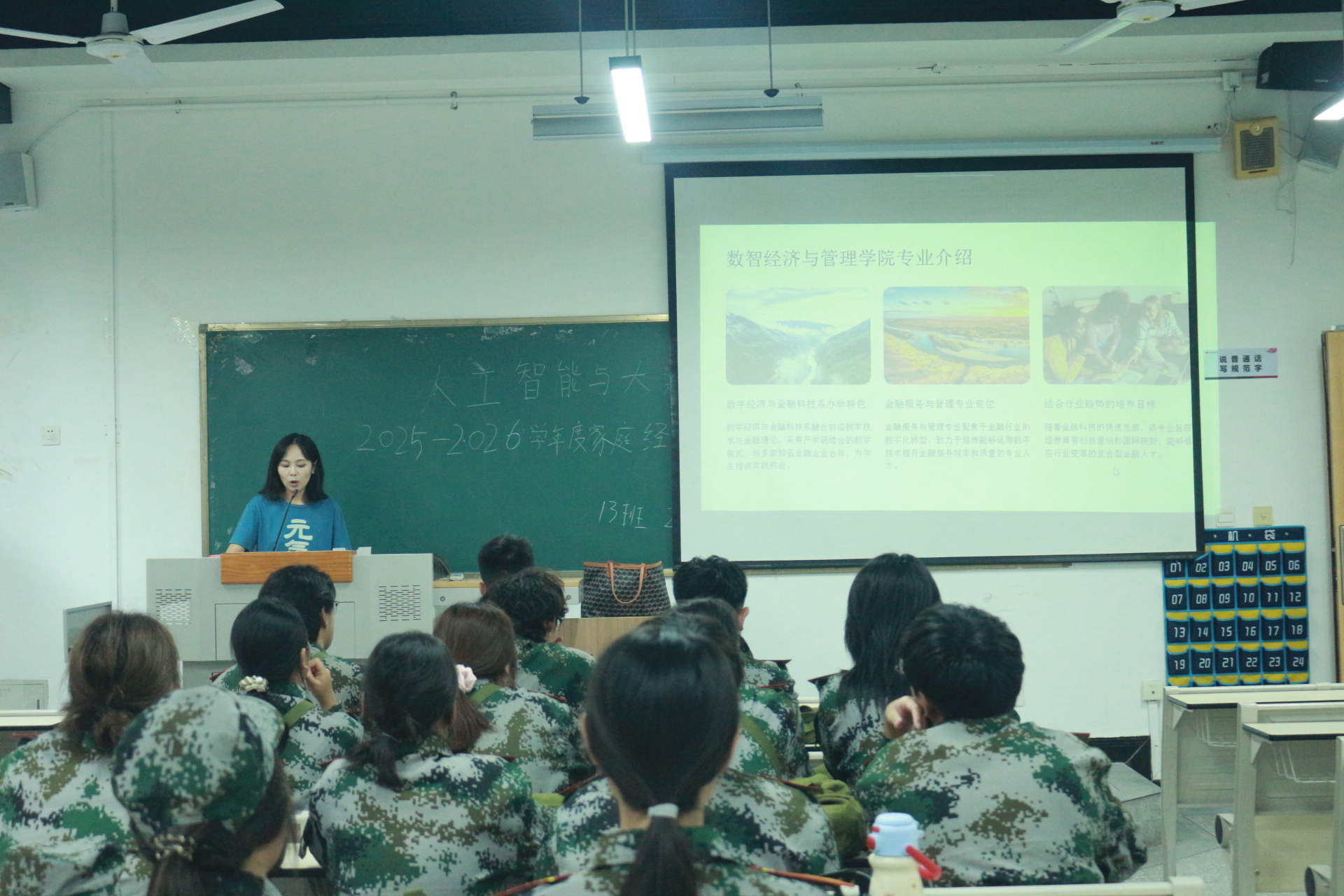 为帮助2025级新生深入了解学院专业特色、明确学业发展方向,9月17日下午15时20分,数智经济与管理学院于教学楼有序开展新生专业教育活动。大数据管理与应用、电子商务、旅游管理、工商管理、经济学、数字经济、金融服务与管理、酒店管理与数字化运营各专业负责人出席会议,2025级全体新生参会。