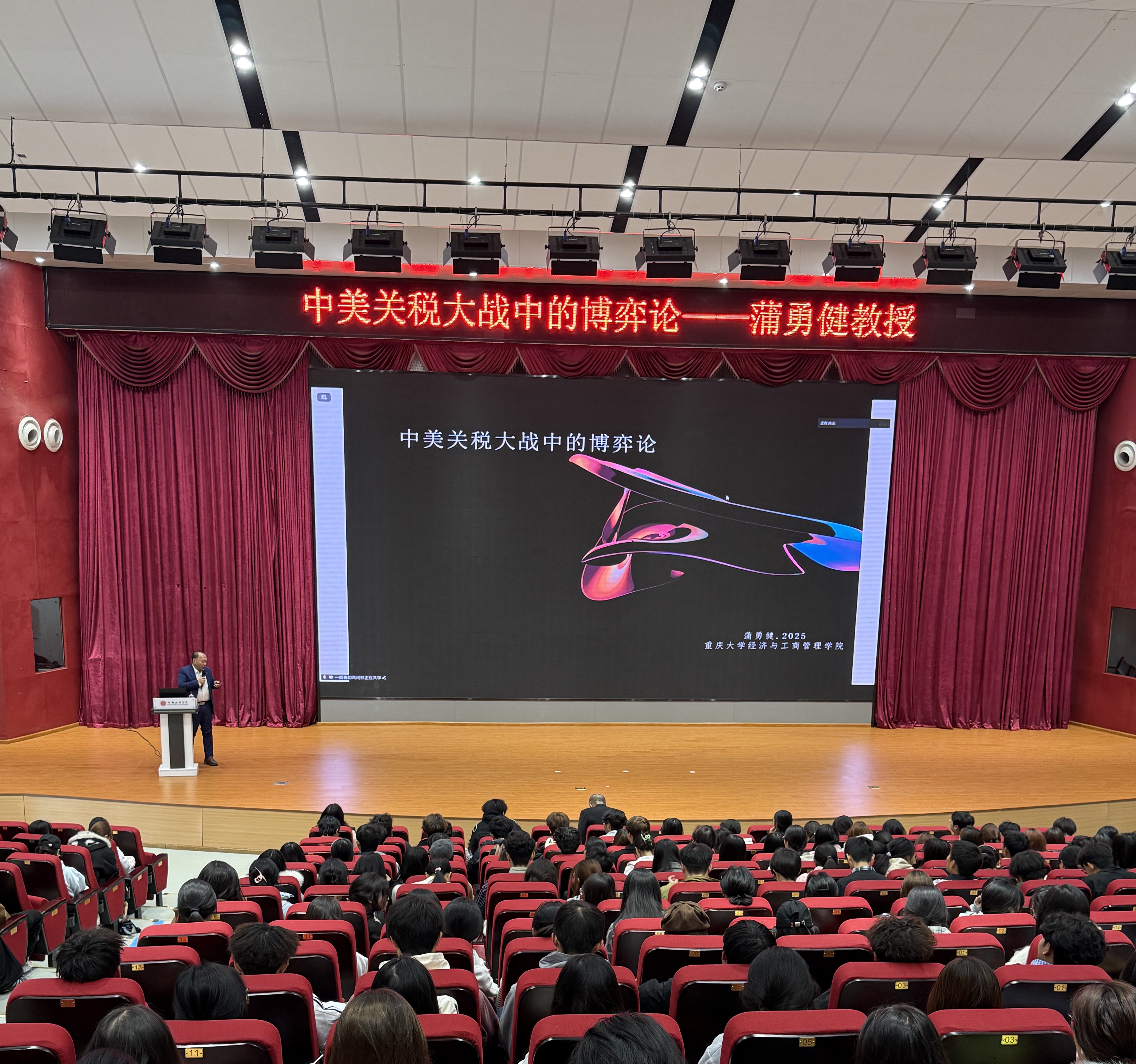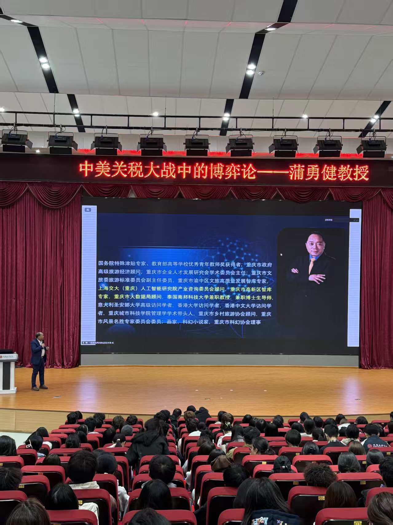 10月31日中午12时30分,重庆大学二级教授,博士生导师,国务院特殊津贴专家蒲勇健教授应邀在成都文理学院举办“中美关税大战中的博弈论”专题讲座。数智经济与管理学院院长李瑞强,数字经济与金融科技系主任吴晓曦,智慧经管实验实训中心主任崔耀元出席,学院二百余名师生参加。