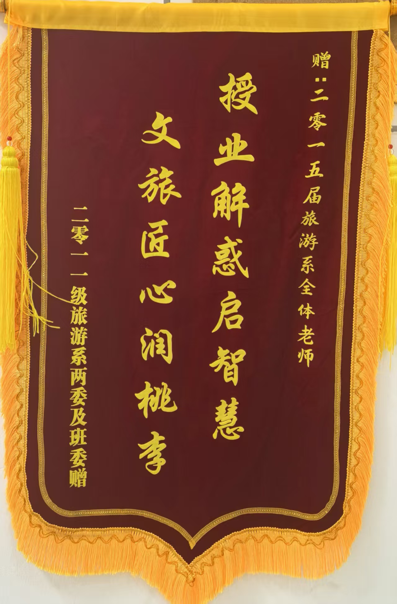 2025年11月5日,成都文理学院旅游管理专业2015届毕业生代表韩华、刘欣、赖凡、马静、满欢及2016届代表李明俊重返母校。为感念师恩,他们专程向数字文旅与智能管理系(原旅游系)全体教师赠送锦旗,以表敬意。