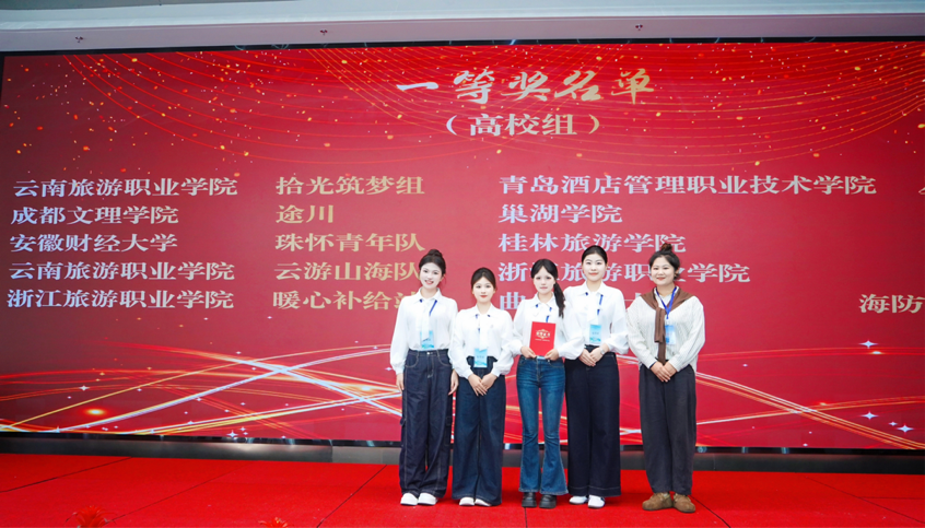 2025年11月21日-23日,由中国旅游协会旅游教育分会举办的第三届全国旅游院校旅游产品策划大赛,在浙江省舟山市普陀区豪城半岛酒店举行。在成都文理学院数智经济与产业学院的大力支持下,数智经济与管理学院吴倩老师指导的旅游管理专业李元羽、刘珂序、谢见丹、杜林梅四位同学,获得了本次大赛高校组全国一等奖,吴倩老师获得“最佳指导教师”,成都文理学院获得“优秀组织院校”称号。