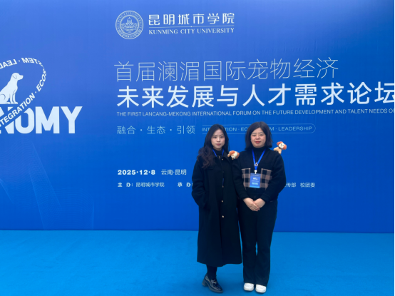 2025年12月8日,首届澜湄国际宠物经济未来发展与人才需求论坛在昆明城市学院拉开帷幕,为抓住新形势下经济发展趋势,为我院人才培养与专业建设提供新思路,数智经济与管理学院教师代表王昕悦、杨莎前往参加。
