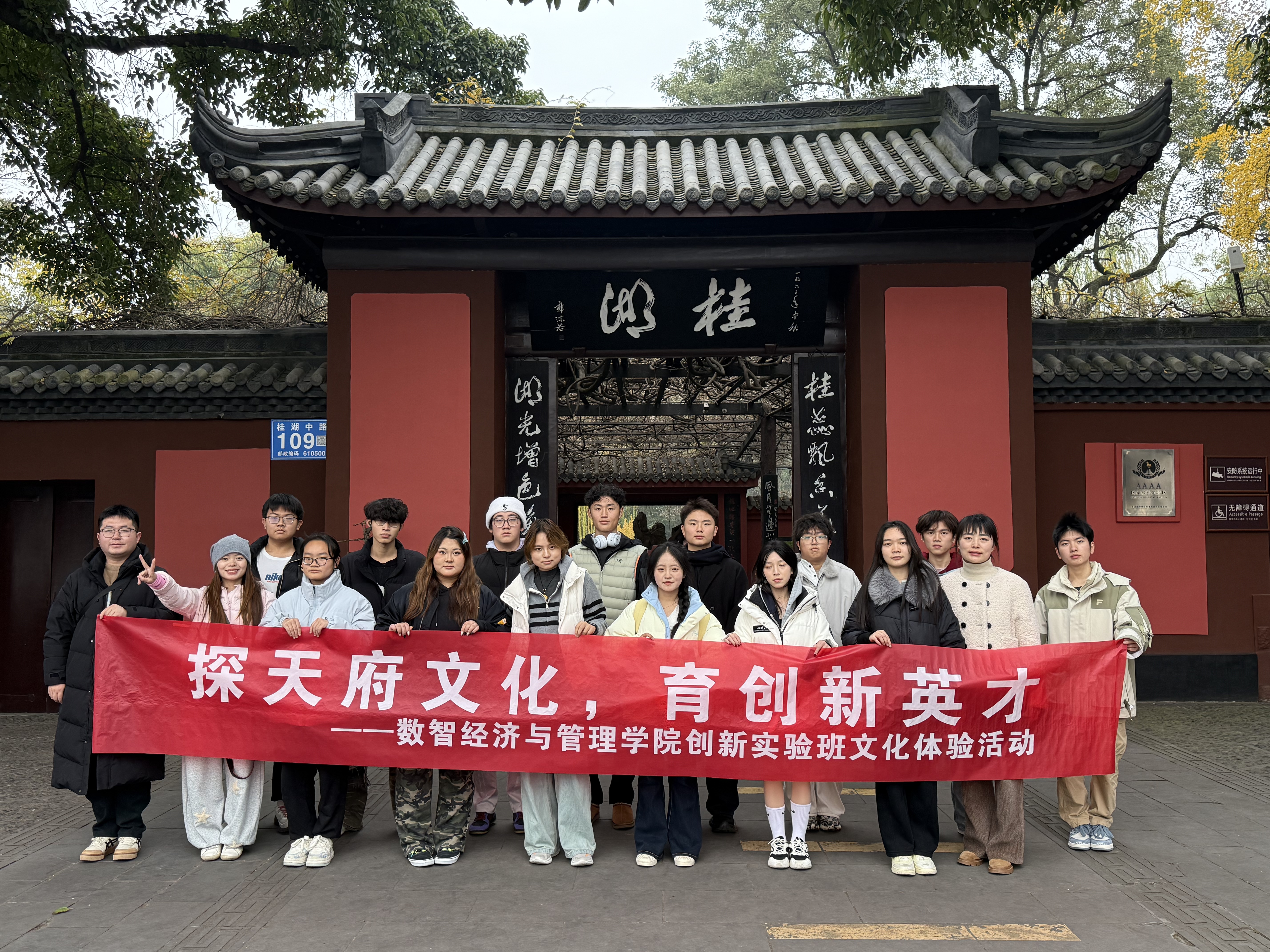 为拓宽学生视野、促进跨专业交流、增强文化底蕴与实践认知,12月19日,数智经济与管理学院组织创新实验班师生共计18人赴成都大熊猫繁育研究基地与新都桂湖公园开展 “探天府文化,育创新英才”主题文化体验实践活动。