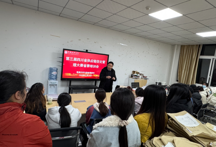 该赛事由四川省教育厅主办,成都信息工程大学承办,有来自川渝地区的西南财经大学、成都理工大学、西南科技大学、西华大学、中国民用航空飞行学院、成都信息工程大学等30余所高校765只队伍参加。数智经济与管理学院数据分析与智能管理系承办了校赛,组织了多学科多专业同学报名,安排了相关老师做企业经营模拟、供应链管理知识培训和竞赛练习。10月26日,按照省组委会要求开展校赛,从23支队伍中选拔了15支队伍参加省级初赛。经过11月上旬的省级初赛,最终有来自大数据管理与应用、工商管理、经济学专业的5支队伍入围省赛决赛。在决赛前半个月,数据分析与智能管理系组织老师对入围决赛的队伍进行了多轮培训和模拟汇报答辩,提升参赛同学的竞赛能力。11月底,数据分析与智能管理系主任石玉峰、副主任张晶宇带领5支队伍参加了在成都信息工程大学(龙泉校区)的决赛。经过上午60分钟的网络型供应链对抗赛和下午的供应链方案汇报答辩,成都文理学院的4支队伍总成绩位列参赛队综合排名前10%,荣获四个一等奖。其中,大数据管理与应用专业首次成团队参赛,覆盖2023至2025级学生,分别取得2项一等奖、1项二等奖、3项三等奖。