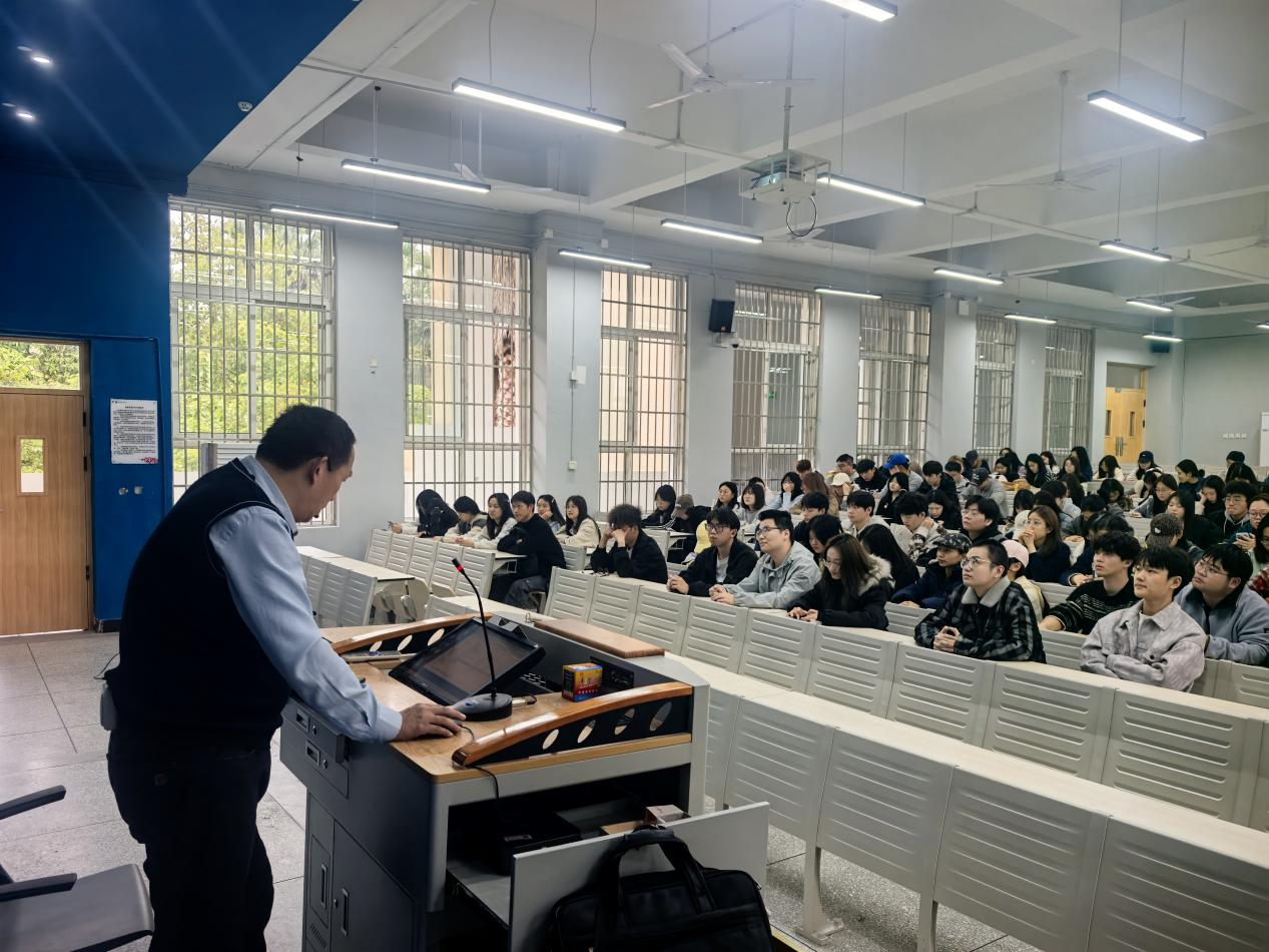 郭洪胜副教授为四川大学工商管理硕士(MBA创业方向),兼具高级经济师、工程师资质,拥有11年高校创业课程教学经验与近20年欧美跨国公司、国企、民企及自主创业经历,指导学生斩获十多项国家级、省级创新创业赛事大奖。讲座中,郭老师首先讲解了创业机会的发现与评价方法、创业思维对职场就业竞争力的提升路径;在创业计划书撰写环节,郭老师结合自己指导的有关省级、国家级比赛获奖案例,从市场分析、产品与服务、商业模式、运营管理、财务管理、风险管理等进行了系统讲解;在提问答疑环节,郭老师还耐心解答了同学们的有关大学生创业和参加相关比赛的提问。整个讲座郭老师充满激情,学生互动较多,现场氛围热烈。